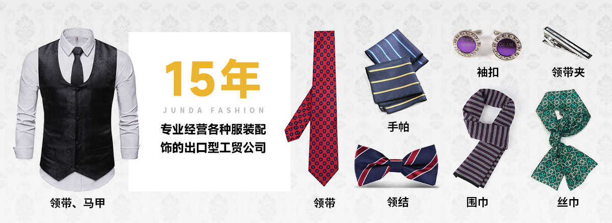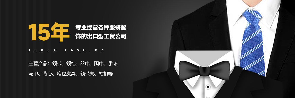 上饒市駿達服飾有限公司是一家專業(yè)經(jīng)營各種服裝配飾的出口型工貿公司,公司多年來致力各種男女服裝國際流行配飾的開發(fā)和生產(chǎn),主要產(chǎn)品為領帶、領結、絲巾、圍巾、手帕、馬甲、背心、箱包皮具、領帶夾、袖扣等,有豐富的內外銷經(jīng)驗及廣泛的國內外銷售渠道,生產(chǎn)基地管理嚴格,質量過硬,并有一批生產(chǎn)加工企業(yè)長期合作